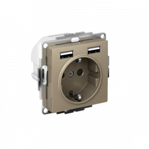 Розетка силовая Schneider Electric AtlasDesign 16А (цвет шампань) с заземлением и шторками с розеткой USB, с двумя разъемами типа А. Лицевые детали из качественного ABS-пластика, устойчивого к царапинам и УФ-излучению. Заземляющий контакт обеспечивает дополнительную защиту от удара электрическим током. Шторки обеспечивают дополнительную безопасность в доме, где находятся дети. Одно устройство позволяет как подключить бытовые приборы, так и зарядить мобильные устройства.