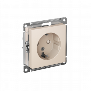 Розетка ATLASDESIGN с заземлением со шторками 16А механизм бежевый