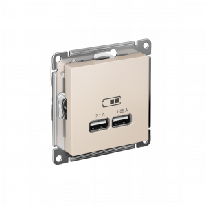 Механизм Systeme Electric (ранее Schneider Electric) серии AtlasDesign в цвете бежевый розетки для зарядки с двумя разъёмами USB, с выходным напряжением 5 В постоянного тока и выходами с номинальным током по 2,1 А. USB розетка позволяет напрямую заряжать одно или два мобильных устройства. Лицевые детали из качественного ABS-пластика, устойчивого к царапинам и УФ-излучению. Усиленные прямые монтажные лапки для лучшей фиксации механизма в монтажной коробке.