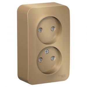Розетка BLANCA наружная двойная, без заземления, со шторками, с изолирующей пластиной, 16А, 250В, титан