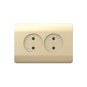 Розетка б/з со шторками двойная, 16А, шампань