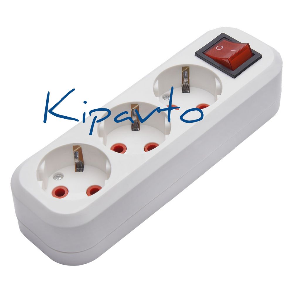 Розетка для удлинителя 3-местная с/з с выключателем, белый