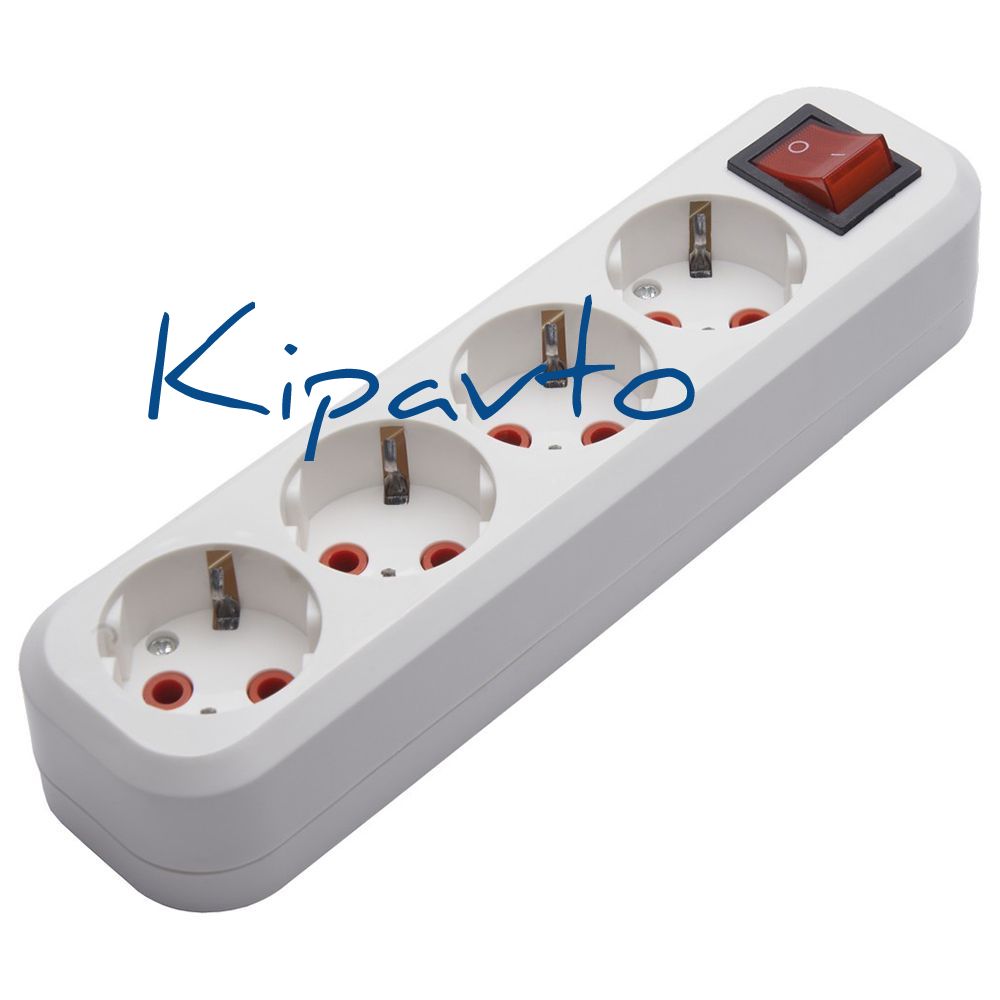 Розетка для удлинителя 4-местная с/з с выключателем, белый