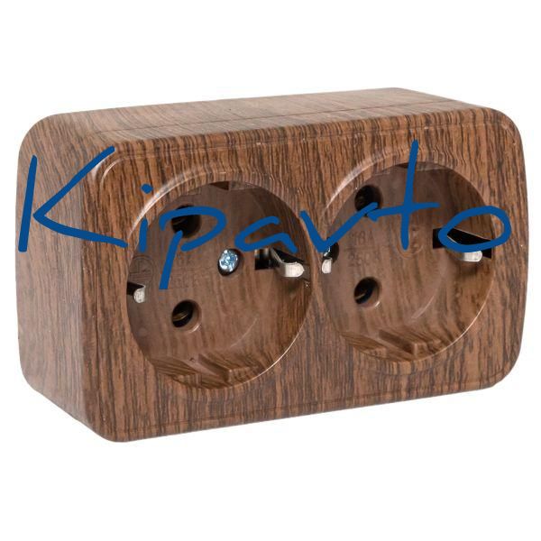 Розетка двухместная ОП Минск 16А с заземлением темное дерево