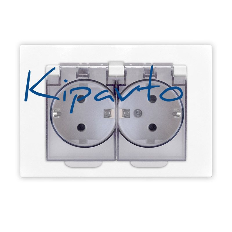 Розетка двухместная UNIVersal серия Афина с/з с прозрачной крышкой, с/у, 16А, 220В, механизм, белая (еврослот)
