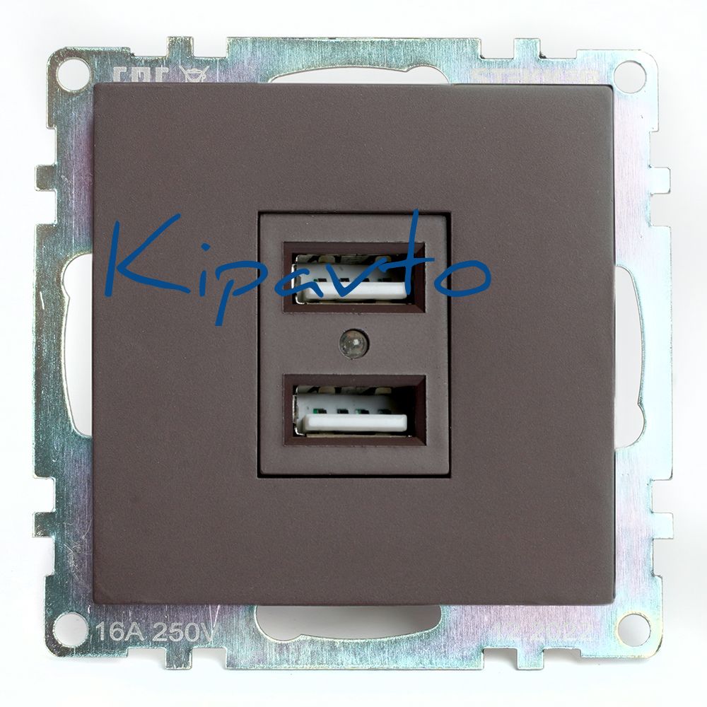 Розетка двухместная USB (механизм), 250В, 2,1А, серия Катрин, шоколад Stekker