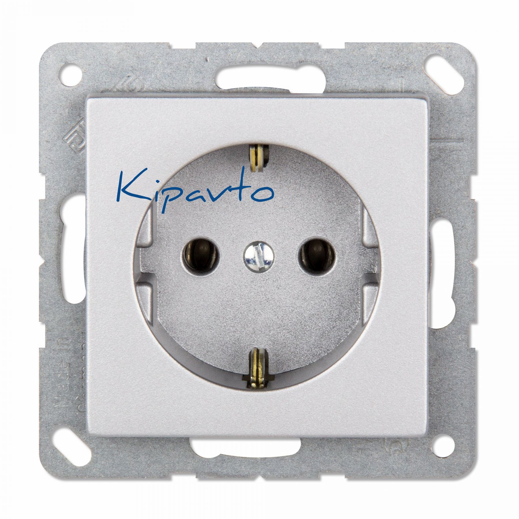 Штепсельная розетка SCHUKO одинарная, с заземлением, без шторок, 16A, 250В (механизм + накладка, без рамки). Серия LS990 Материал- металл Цвет- алюминий