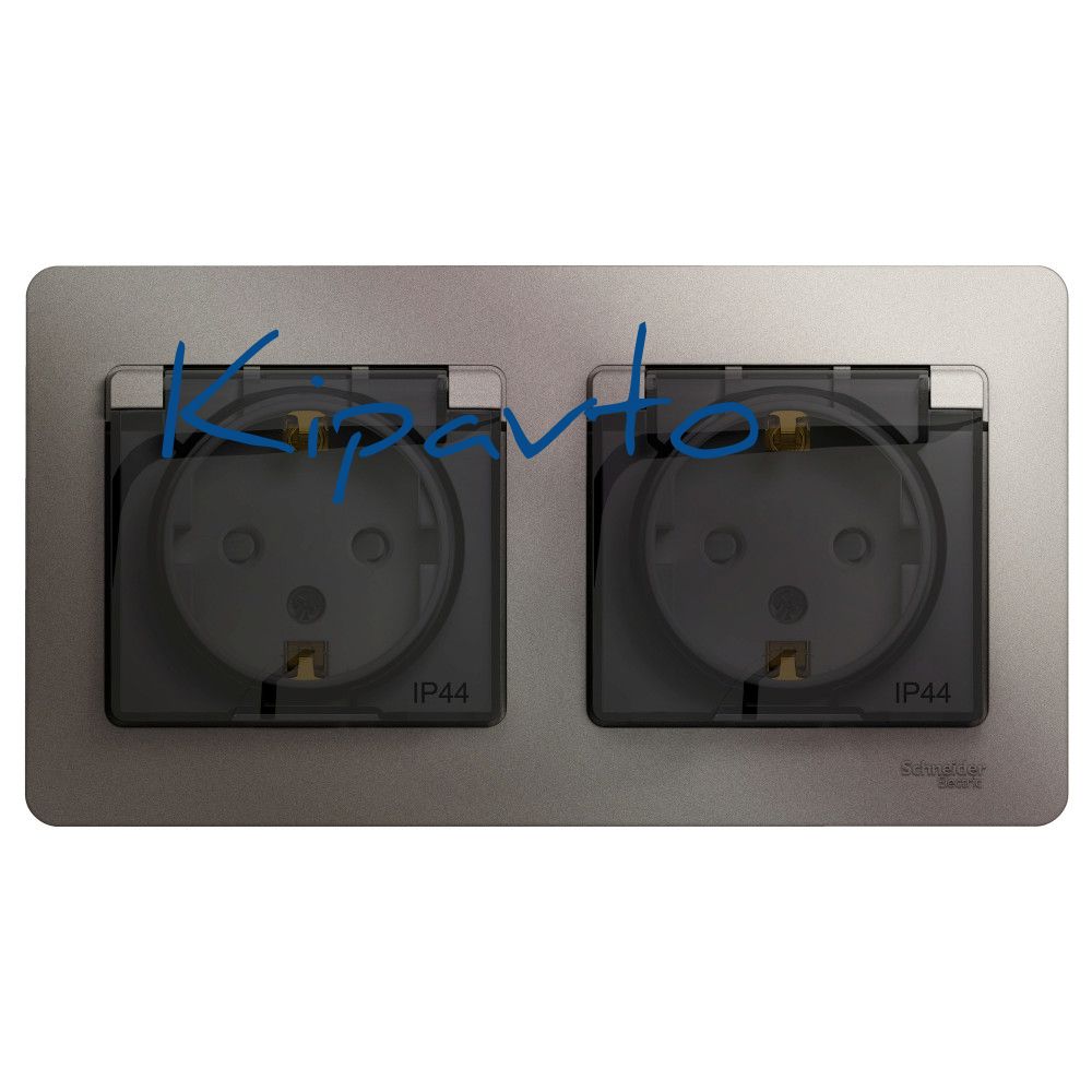 Розетка GLOSSA двойная с заземлением со шторками в сборе IP44 платина