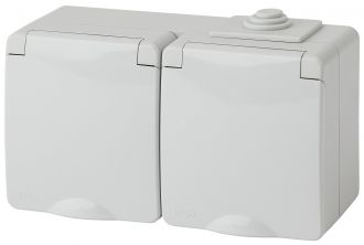 Розетка двойная горизонтальная IP65 с крышкой серии Эра Эксперт открытой установки цвет белый 11-2603-03. Номинальные характеристики 16А 250В . Устройство выполнено из качественного поликарбоната, оснащено уникальными винтовыми клеммами ЭКСПЕРТ для максимально качественного зажима кабеля в механизме.