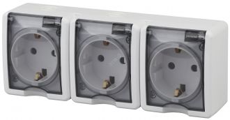 Розетка тройная IP54 3-я серии Эра Эксперт открытой установки цвет белый 11-2405-01. Номинальные характеристики 16А 250В . Устройство выполнено из качественного поликарбоната, оснащено уникальными винтовыми клеммами ЭКСПЕРТ для максимально качественного зажима кабеля в механизме.