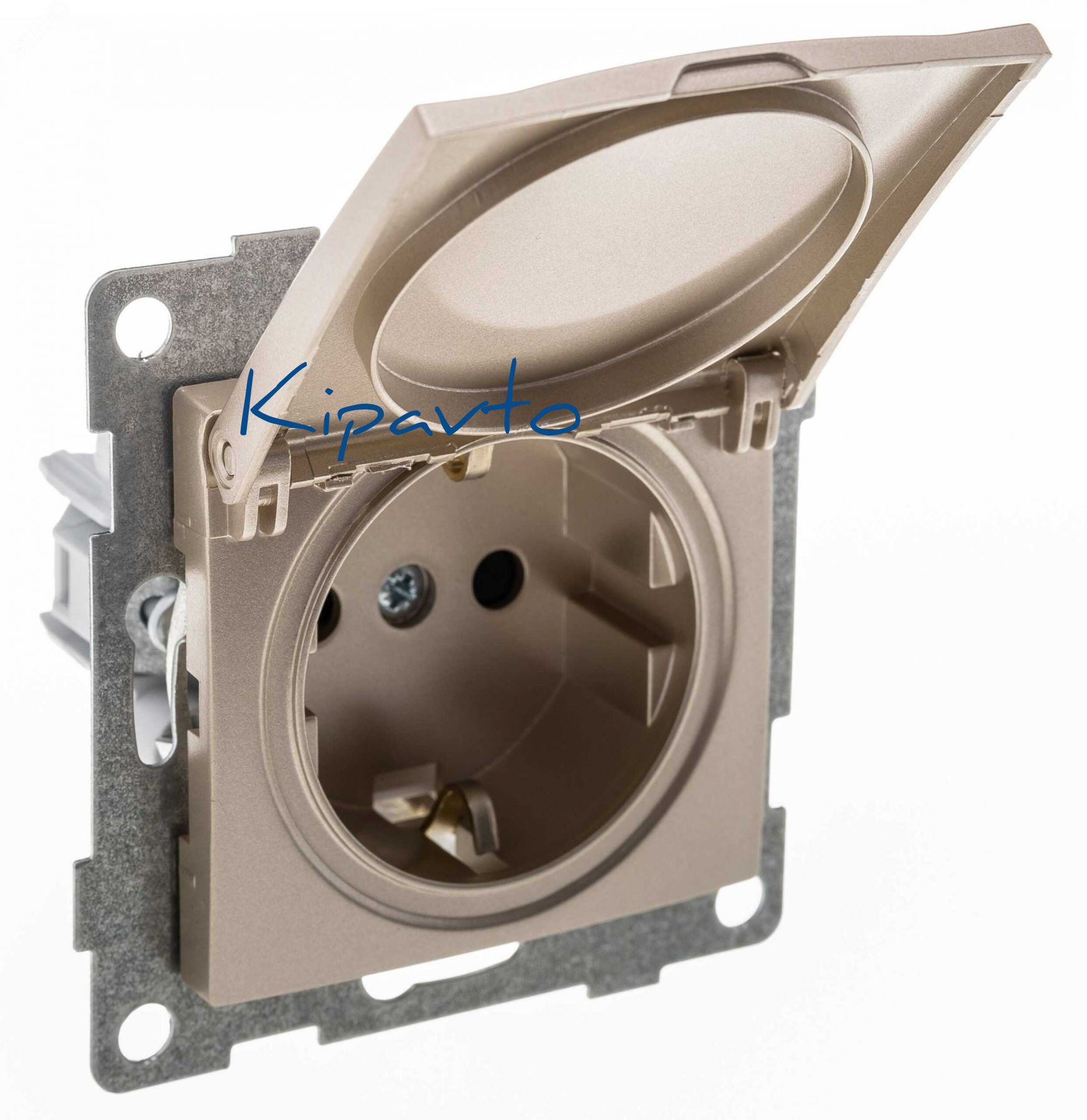 Розетка однопостовая Bravo с/з с з/ш и крышкой, механизм, 16А, 250В, шампань