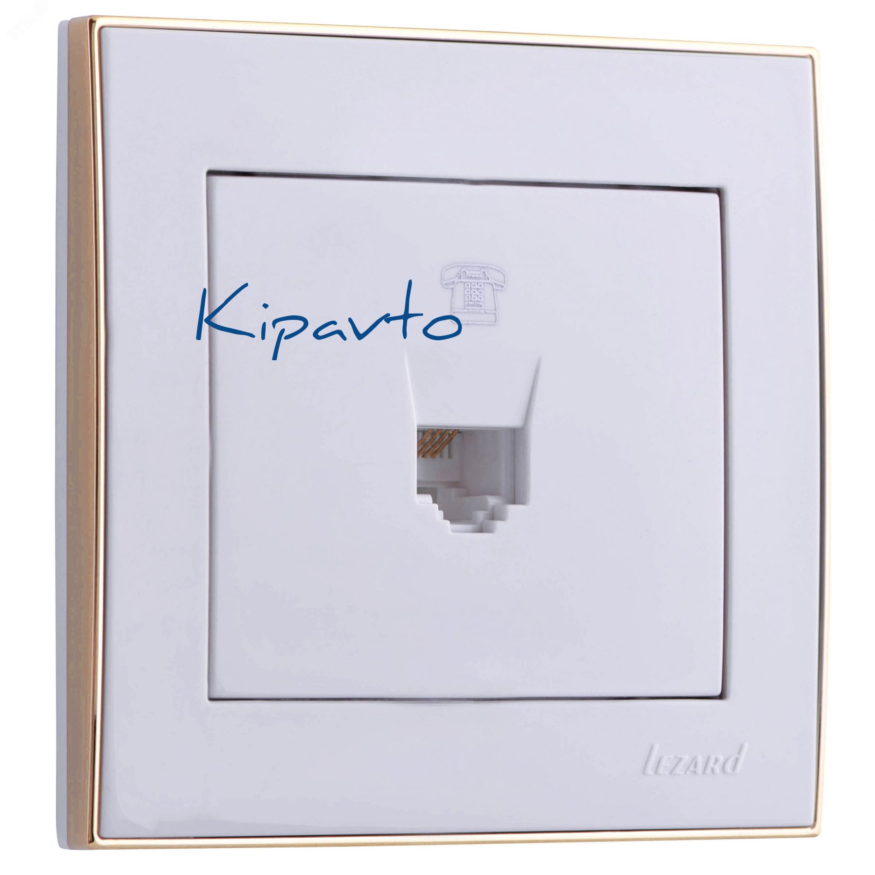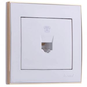 Розетка RAIN телефонная евро белая с боковой вставкой золото