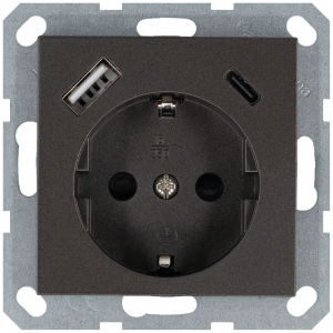 Розетка Schuko с USB A+C с защитными шторками 16A 250V~ 2P+T USB 25W, цвет Мокко