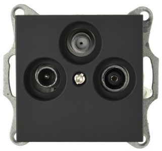 Розетка TV+FM+SAT9.5 мм оконечная с накладкой, цвет черный матовый (soft touch)