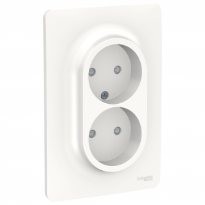 Розетка UNICA NEW двойная со шторками без заземления винтовой зажим белый
