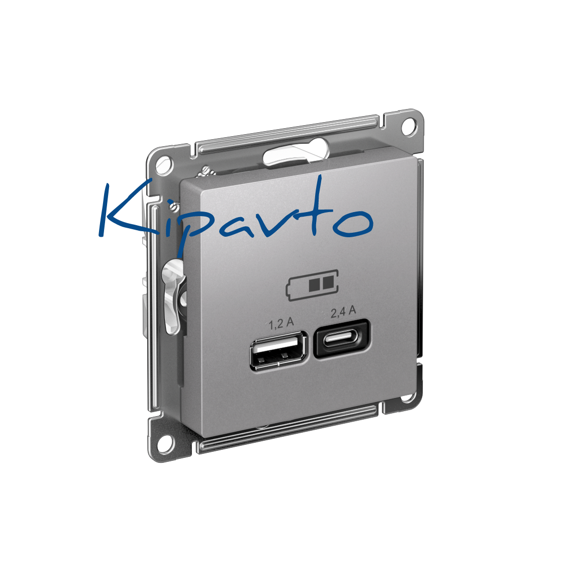 РОЗЕТКА USB ATLASDESIGN A+С, 5В/2,4А, 2х5В/1,2А, механизм, АЛЮМИНИЙ