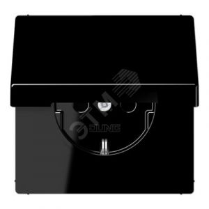 Штепсельная розетка SCHUKO одинарная, с заземлением, с откидной крышкой, 16A, 250В (механизм + накладка, без рамки). Серия LS990 Материал- дуропласт Цвет- черный