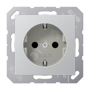 Штепсельная розетка SCHUKO одинарная, с заземлением, с шторками, 16A, 250В (механизм + накладка, без рамки). Серия A500 Материал- дуропласт Цвет- алюминий