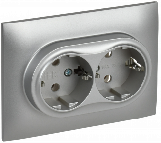 SKANDY Розетка 2-местная с заземлением без защитных шторок 16А в сборе SK-R08S серебряный IEK