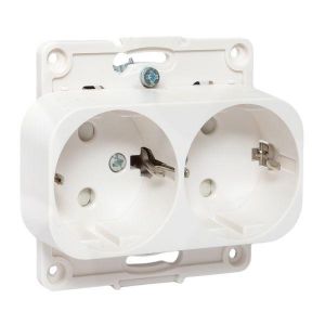 Стокгольм Механизм Розетки 2-местной с/з 16А белый с защ. штор.