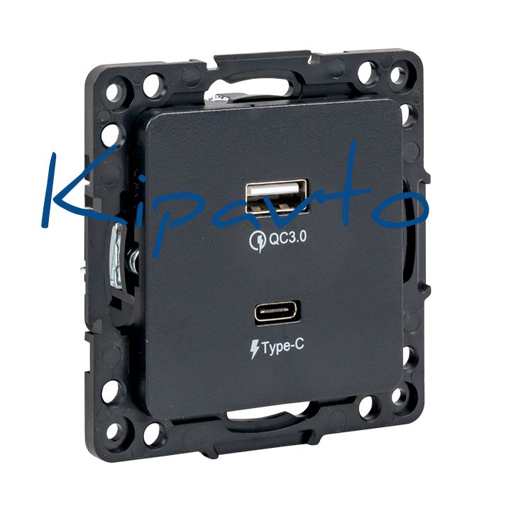 Стокгольм Механизм Розетки с 2USB type-A + type-C черный