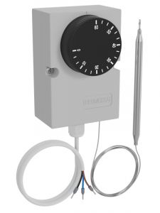 TS-K1.5-060 - Регулирующий капиллярный термостат для помещений с переключающим контактом SPDT. Предназначены для автоматического поддержания температуры. Работа термостата основана на свойстве объёмного температурного расширения. Чувствительным элементом является термобаллон. Термостат используется в системах автоматизации для управления исполнительными устройствами, а также для прямого включения исполнительных устройств. Длина капилляра 1, 5м. Диапазон измерения и регулировки 0…+60 градусов Цельсия, корпус выполнен из пластика и изолирован от воздействий окружающей среды по стандарту IP54