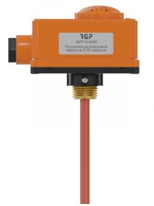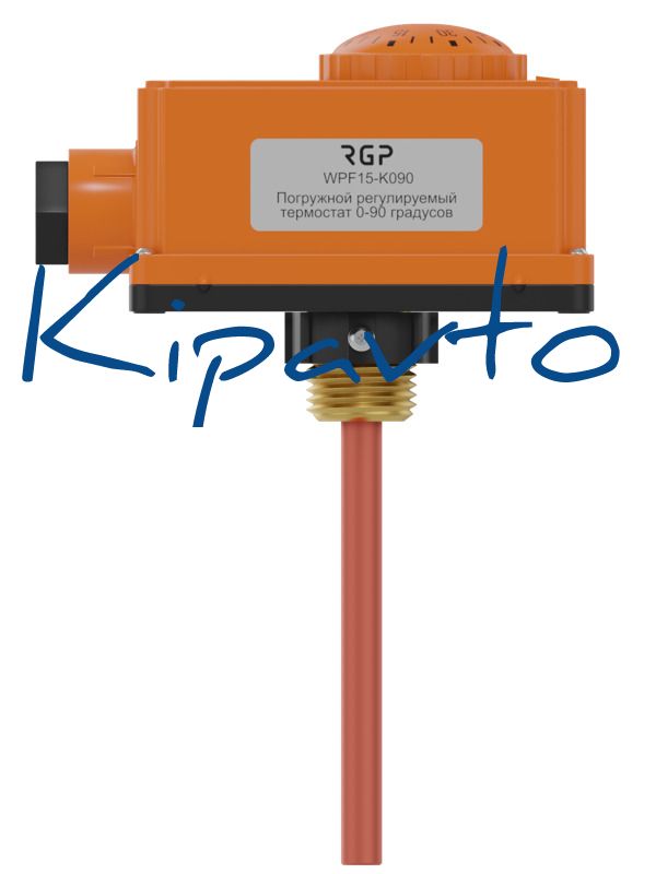 WPF15-K090 - погружной термостат с переключающим контактом SPDT. Предназначен для автоматического поддержания температуры в системах радиаторного отопления, горячего водоснабжения и т.д. Термостат может использоваться для управления исполнительными устройствами, а также в комплексных системах для управления и сигнализации. Диапазон измеряемой температуры составляет 0-90 градусов. Принцип работы термостата основан на свойстве объёмного температурного расширения. В медной погружной гильзе находится термочувствительный баллон. Жидкость, находящаяся в баллоне термостата, нагревается, расширяется и через капиллярную трубу избыточный объём переходит в сильфон, который удлиняется и передаёт усилие на контактную группу