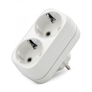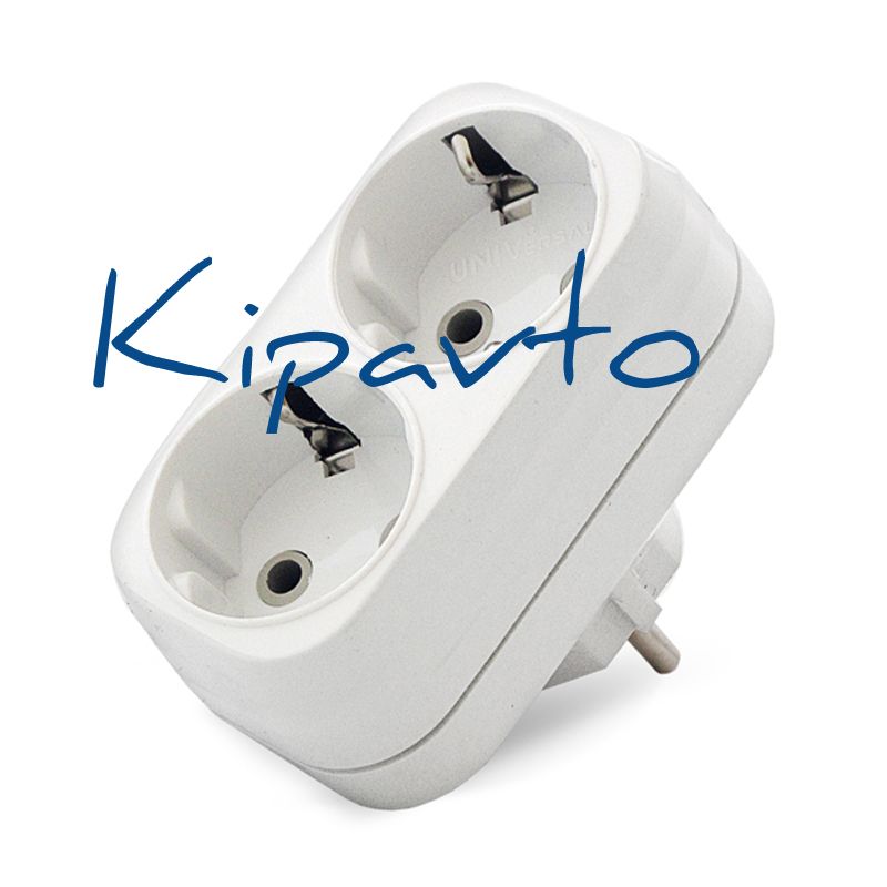 Плоский разветвитель 2 гнезда, заземление, белый 16А 250В UNIVersal А302 - простое и удобное устройство для разветвления одной стационарной розетки и возможности подключения одновременно двух бытовых электроприборов. Заземление обеспечивает повышенный уровень электробезопасности.