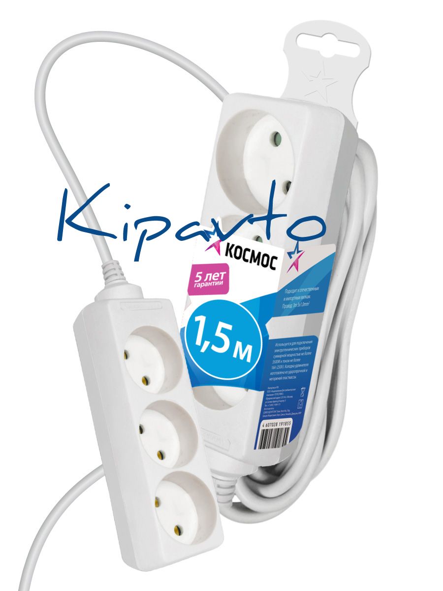 Высокомощный бытовой удлинитель 3600 Вт 1,5м на 3 гнезда - без проблем выдержат одновременное подключение сразу нескольких энергоемких устройств, например чайника, тостера и холодильника. Корпус из негорючего полипропилена, 100% медный кабель ПВС 2х1мм (без заземления). Контактная группа из латуни не деформируется со временем. Литая вилка с высококачественной арматурой и защита от перетирания провода в стыке с корпусом удлинителя обеспечат долгую службу. 5 лет гарантии.