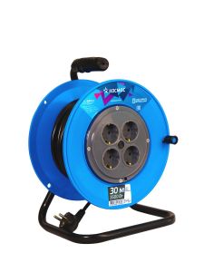 Катушка из прочного, долговечного пластика синего цвета, провод ПВС с заземляющей жилой и максимальной мощностью нагрузки 3500Вт. Специальный провод ПВС пониженной пожарной опасности с уменьшенным дымо и газовыделением и повышенной масло-бензостойкостью.