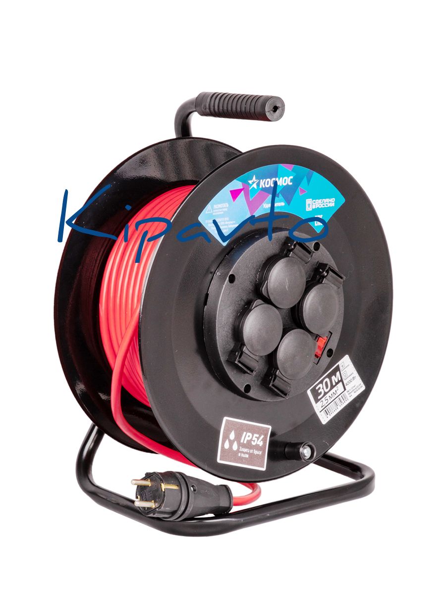 Катушка из металла, защита от пыли и влаги по стандарту IP54 с подпружиненными крышками, выключатель, RESET и встроенная термозащита, провод ПВС с большим сечением и максимальной мощностью нагрузки 4000Вт.