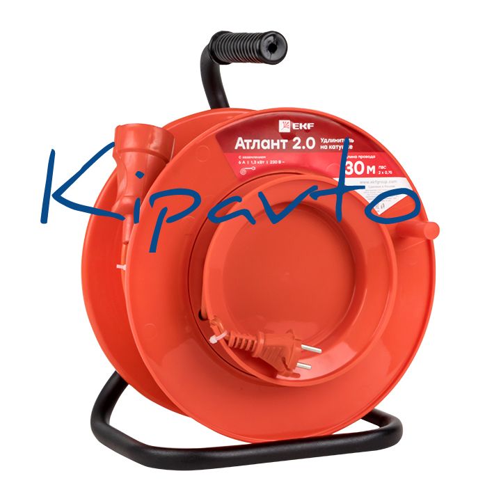 Преимущества: Рама из металлической трубы с резиновой рукояткой|Ударопрочный пластик катушки|Розеточный блок на четыре гнезда|Гибкий надежный проводник ПВС от 30 до 50 метров