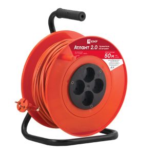 Удлинитель на катушке Атлант 2.0 4 гнезда 50м без заземления ПВС 2x0.75 6А/1.3кВт PROxima