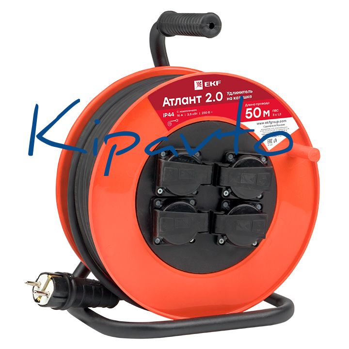 Удлинитель на катушке 'Атлант 2.0' 4 гнезда 50м с заземлением ПВС 3x1.5 16А/3.5кВт IP44 PROxima