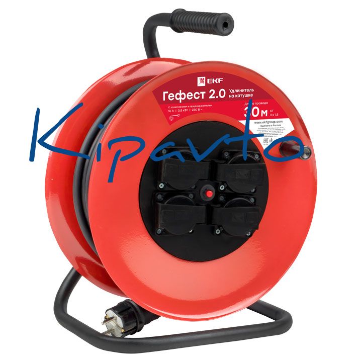 Удлинитель на катушке Гефест 2.0 4 гнезда 30м с заземлением и предохранителем КГ 3*2,5 16А/3,5кВ тIP44 PROxima
