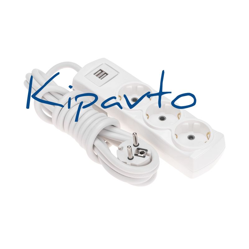 Удлинитель PREMIUM 3 гнезда, 3 м, 3х1,5 мм2, с/з, 2 USB, белый