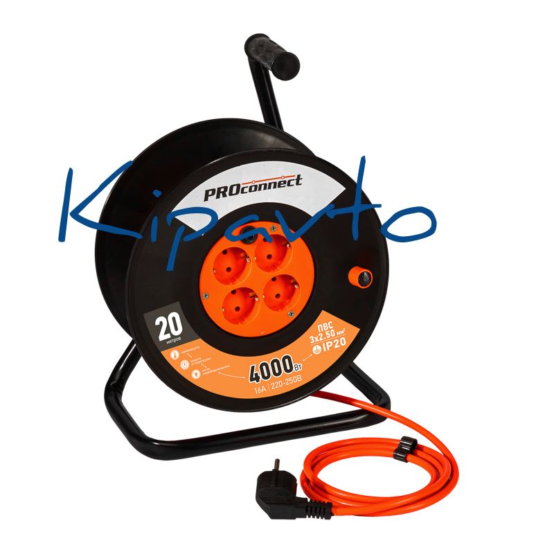 Силовой удлинитель PROconnect используется для удобного подключения к сети электроприборов на удаленном расстоянии от стационарной розетки. Конструкция предусматривает наличие четырех гнезд, что позволяет подключить несколько устройств. Универсальная электрическая вилка на проводе позволит подключиться к розеткам российского и европейского стандарта. Для удобства транспортировки и хранения шнур поставляется на катушке.Устройство обладает высокой надежностью и безопасностью, благодаря использованию качественных материалов. Перед включением максимальной нагрузки необходимо полностью размотать шнур.
