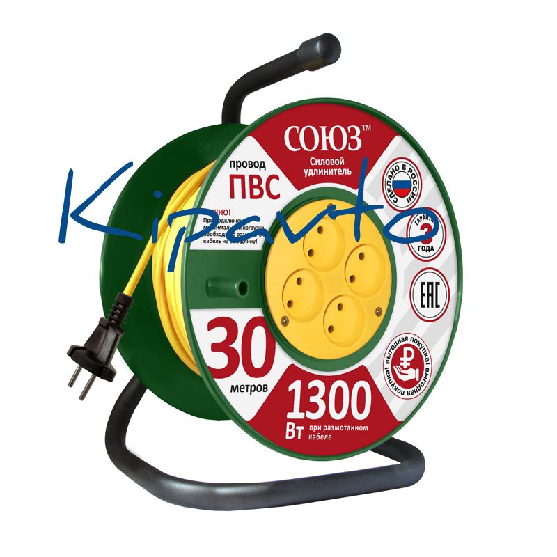 Удлинитель Союз силовой на катушке с 4 гнезда 1300 Вт 30м