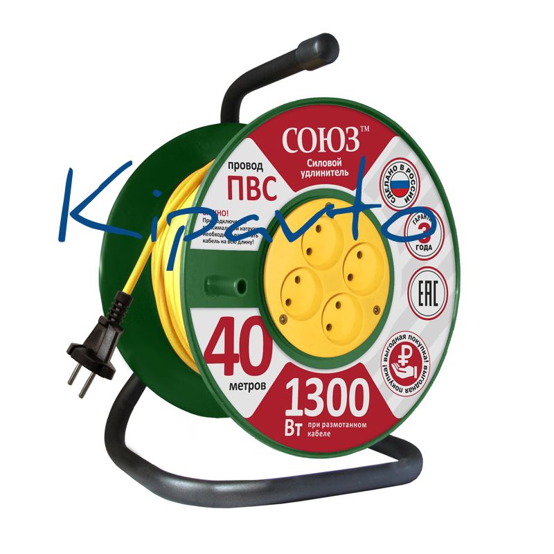 Удлинитель Союз силовой на катушке с 4 гнезда 1300 Вт 40м