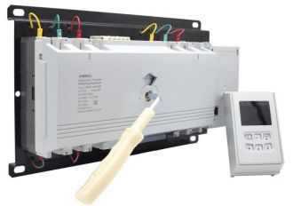 Преимущества: Компактность|Простота установки|Защита от электромагнитных помех|Переключение на резервную линию или генератор|Контроль напряжения по фазам|Установка переключения по показателю напряжению сети|Возможность выноса панели управления на дверь электрощита