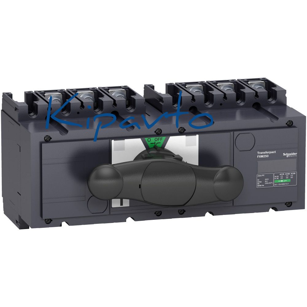 Моноблочное устройство для выключателей-разъединителей Compact INS250 Schneider Electric, 3-полюсное, номинальный ток 250 А. Устройство предназначено для применения в сетях до 690 В пер. тока и 250 В пост. тока. Моноблочное устройство ввода резерва с общей рукояткой управления позволяет переключаться с рабочего на резервный источник питания.