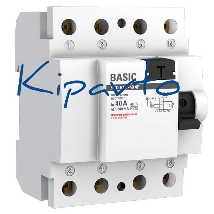 Комплектация: выключатель дифференциального тока ВДТ-40 4P 40А 300мА тип АС электронный 4,5кА BASIC