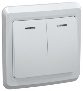 VEGA Выключатель 2-клавишный с индикацией 10А ВС10-2-1-ВБ белый GENERICA
