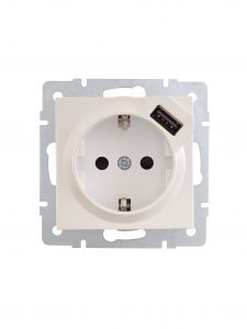Розетка с заземлением идет с дополнительным разьемам USB для зарядки портативных устройств