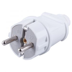 Штепсельная вилка прямая с заземлением в разборном корпусе, чаще всего используется для комплектации приборов не бытового назначения или для замены неразъемных вилок, вышедших из строя. Штепсельные вилки прямые с заземлением это двухполюсные вилки с боковыми заземляющими контактами, снабжены металлической скобой, изолирующей прокладкой.