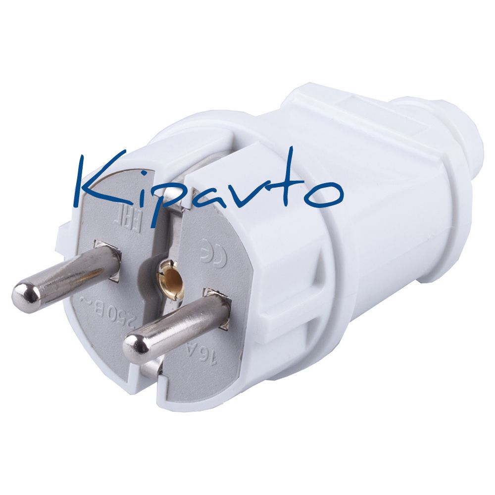 Вилка прямая с/з, пластик 250В, 16A, IP20, белая