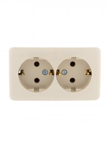 VIOLA Розетка двойная с/з закрытый корпус керамика крем (12шт/144шт)
