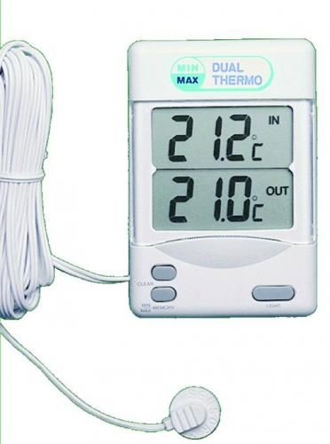 Оптимален для контроля температуры морозильника. Диапазон измерений -50 до +70°C, разрешение 0,1°C. Внешний выносной кабель датчика 3 м, с подставкой и настенным креплением. Размеры: прибл. 80 х 55 х 20 мм, с батарейкой. Калибровка на одну или две контрольные точки температуры - по запросу.