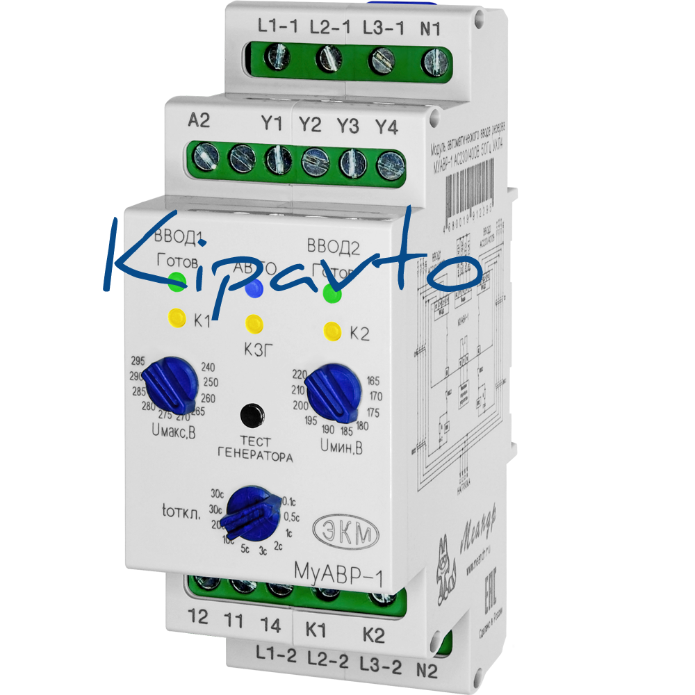 Модуль управления автоматического ввода резерва МуАВР-1 (далее Устройство) предназначен для автоматического переключения нагрузки на резервную линию, при отключении или возникновении аварийных ситуаций на основной рабочей линии. Устройство предназначено для использования в системах электроснабжения в однофазных и трехфазных четырехпроводных сетях (трехфазных сетях с нейтралью) для обеспечения энергоснабжения I и II категории подключения.