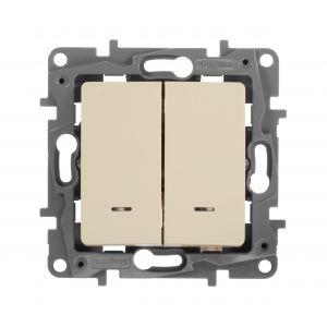 Выключатель 2-клавишный проходной с подсветкой/индикацией 10А безвинтовое крепление слоновая кость ETIKA